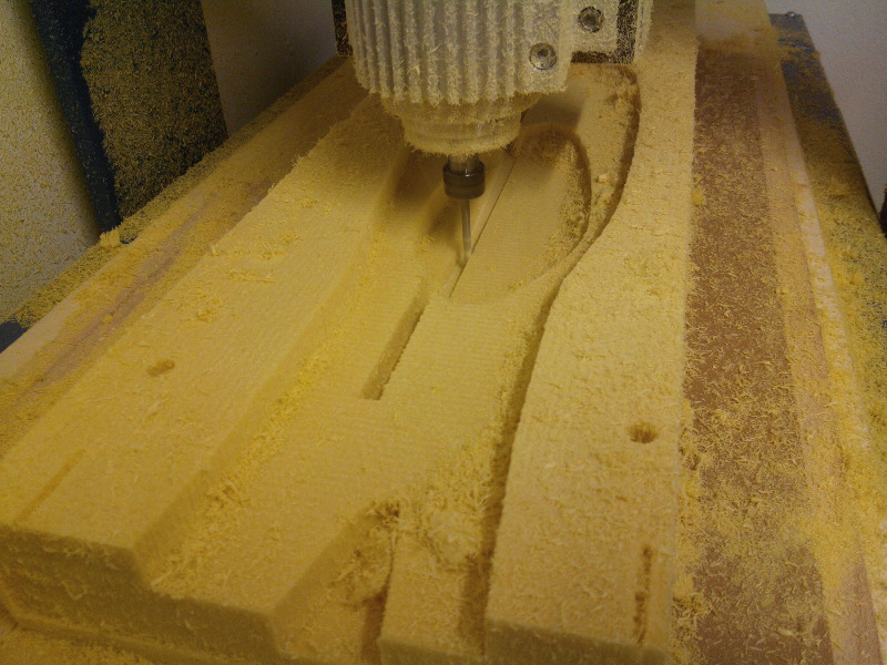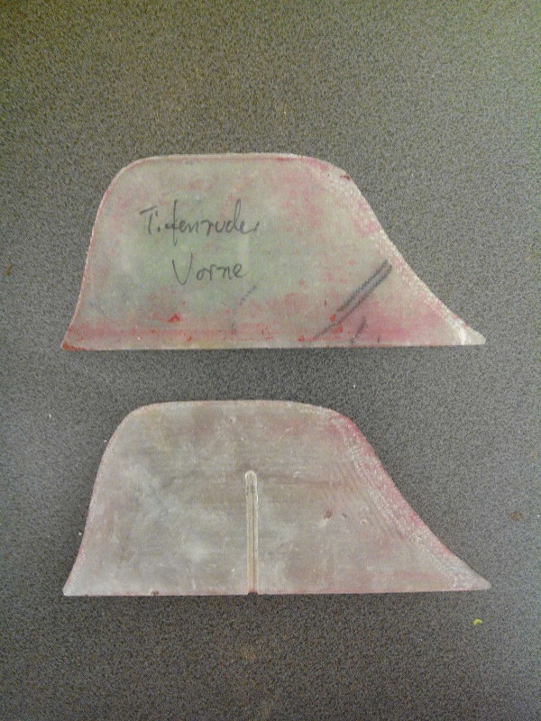 Was noch fehlt ist das Lager für die Welle (auf dem zweiten Bild sieht man schon das Loch wo die Welle durchkommt und im vorderen Bereich kommt dann das Stützlager hin). Ist eine relativ komplexe Form die aber als Gießform ausgelegt wird. Von daher wird das nächste erst mal was einfaches sein und ich werde die Ruder machen. D.h. MDF nehmen, Negativform ausfräsen und einfach reinlaminieren. Das mache ich für die Oberseite, die Unterseite und klebe diese dann zusammen.